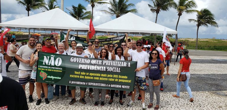 Contra a reforma da Previdê;ncia e o desmonte promovido governo Bolsonaro, estudantes, professores e trabalhadores de todos os setores, endossaram